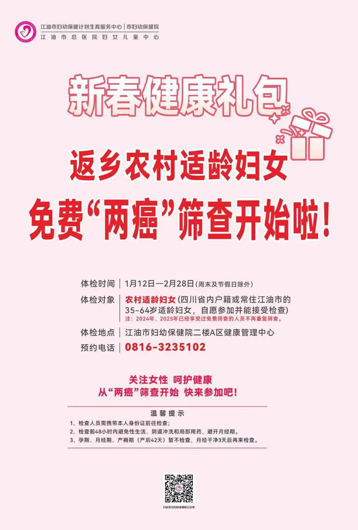【新春健康礼包】免费“两癌筛查”,赶快告诉身边的她