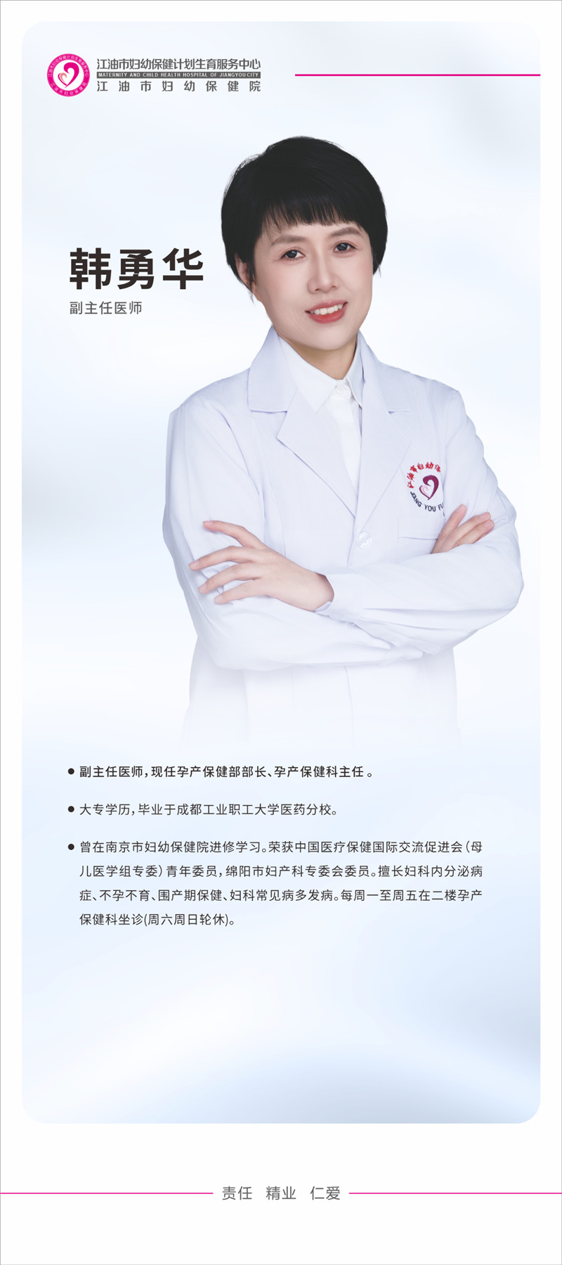 她用27年的从医生涯惊艳了时光,书写了一部医者仁心的大爱篇章,她就是江油市妇幼保健院孕产保健部部长、孕产保健科主任韩勇华。