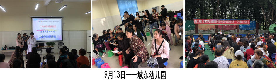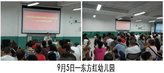 夏秋交替之际是儿童常见传染病的高发季节,为了普及儿童健康知识,提高教师和家长秋季儿童常见传染病的预防和家庭护理知识,保障儿童健康成长。9月5日开始,江油市妇幼保健计划生育服务中心健康知识巡讲团“六进、五讲”进校园系列活动正式拉开序幕,巡讲团先后走进东方红幼儿园、龙头幼儿园、太白幼儿园以及城东幼儿园,为广大教师及家长开展儿童秋季传染病预防知识讲座。本次系列活动共吸引了近1100余名老师和家长参加。