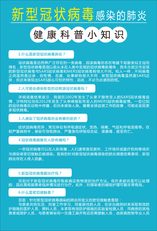 新型冠状病毒感染的肺炎健康科普小知识