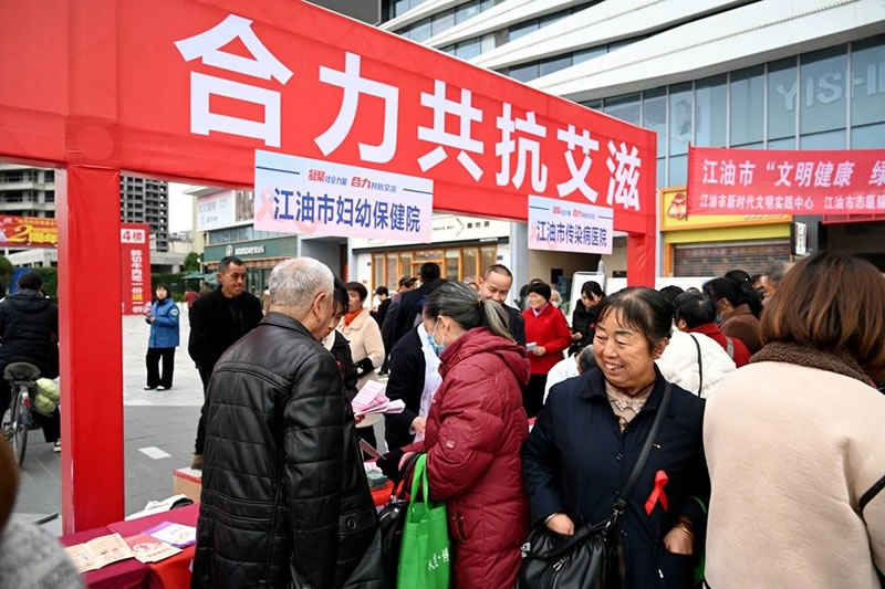 2023年12月1日是第36个“世界艾滋病日”,宣传主题是“凝聚社会力量,合力共抗艾滋。”,当日,江油市第36个“世界艾滋病日”大型宣传活动在圣名国际广场举行,市妇幼保健院派出7名医护工作人员参加活动。