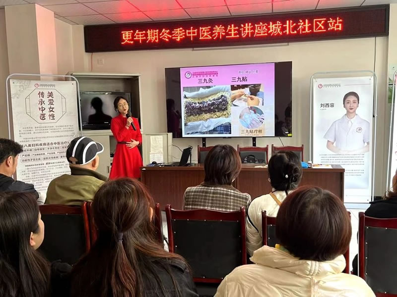 在城北社区,妇女保健科主任刘西容给大家普及了冬季健康知识,并为在场群众进行了免费“耳穴压豆”,赠送了“三九贴”“三九灸”和中药足浴包。