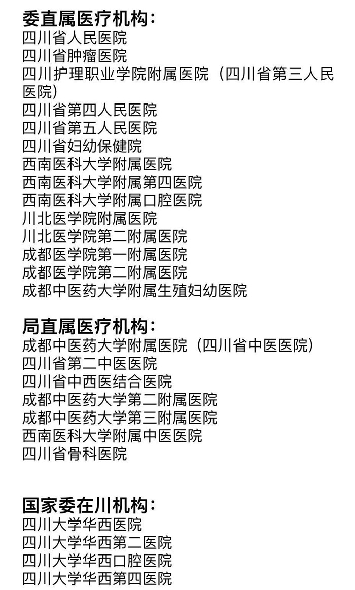 国家卫生健康委在川医疗机构、省卫生健康委和省中医药管理局直属医疗机构;在绵阳开通了就医绿色通道的医院为绵阳市中心医院、绵阳市妇幼保健院。
