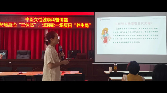 讲座现场,妇女保健科主任刘西容以深入浅出的语言揭开了“冬病夏治”三伏贴的神秘面纱。她强调:“三伏贴利用盛夏阳气升腾之势,通过特定穴位敷贴温阳药物,能有效激发身体正气,尤其对儿童反复呼吸道感染及女性虚寒痛经有显著调理效果。” 在场听众纷纷记录贴敷要点与适用人群,以备入伏后及时调理。