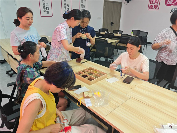 中药香囊制作区气氛温馨热烈。大家在药师指导下亲手配伍艾叶、藿香、薄荷等天然药材,缝制出一枚枚小巧精致的驱蚊防感香囊。一位年轻妈妈欣喜道:“孩子总被蚊虫叮咬,这个亲手做的香囊既安全又能防病,还能让他了解中药味道,太有意义了!”