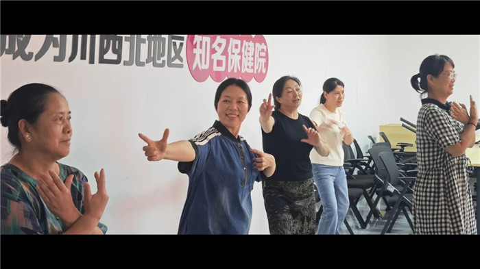 活动高潮在八段锦集体习练中到来。在舒缓悠扬的乐声中,老师带领全场女性朋友舒展肢体,练习“双手托天理三焦”、“左右开弓似射雕”等经典招式。参与者们沉浸于其圆活连贯、松紧结合的独特韵律中,体验气血畅通的舒畅感。一位坚持练习的阿姨分享:“每天跟练八段锦后,肩颈轻松了,睡眠也踏实许多,真是老祖宗传下来的宝贝!”