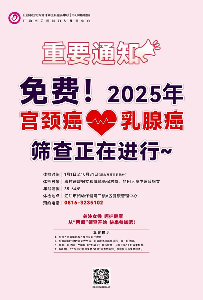 【重磅福利】农村适龄妇女免费“两癌”筛查开启!关爱健康,速来筛查!