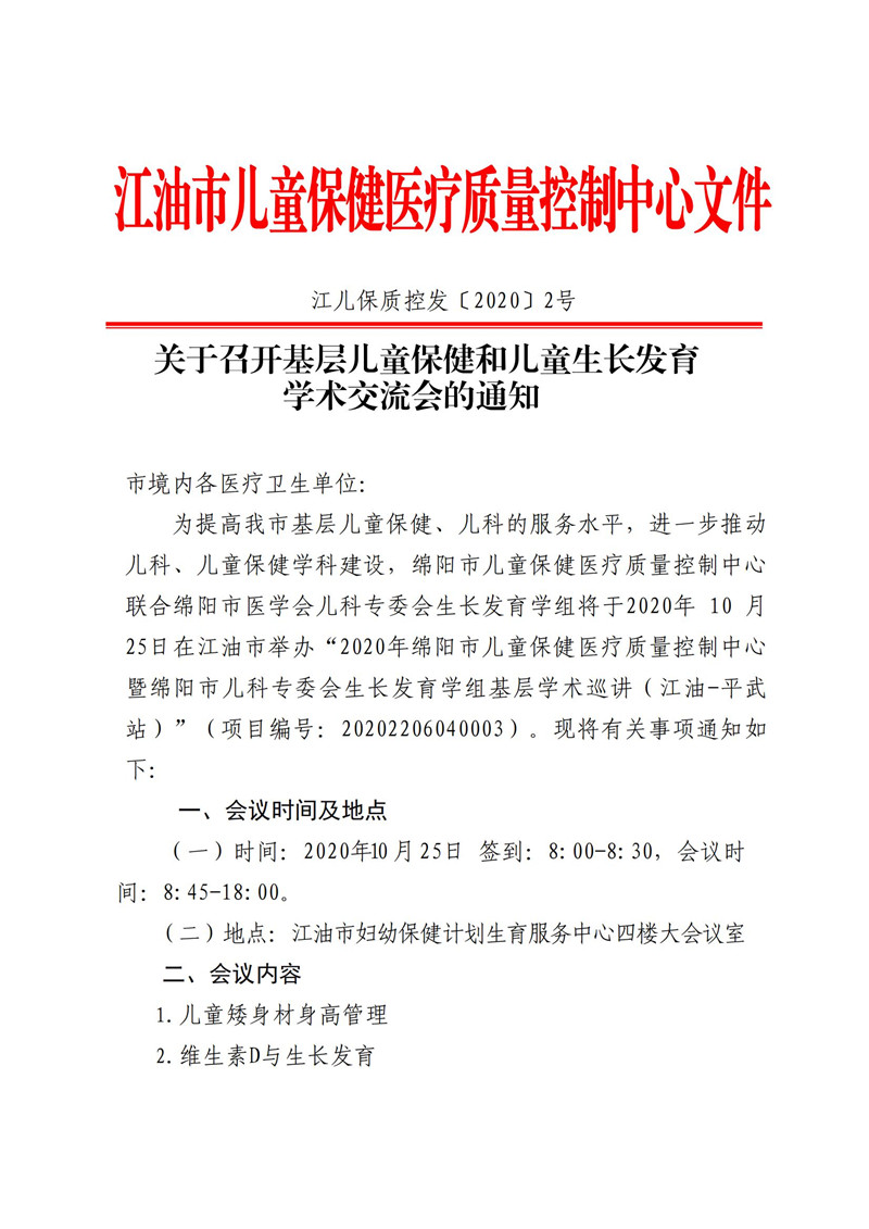 关于召开基层儿童保健和儿童生长发育学术交流会的通知