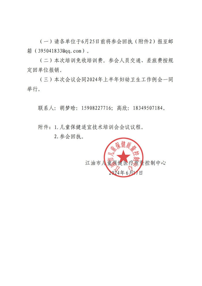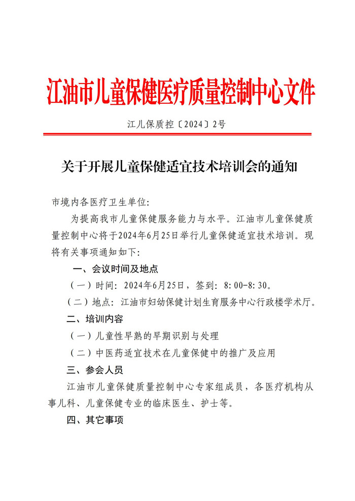 关于开展儿童保健适宜技术培训会的通知
