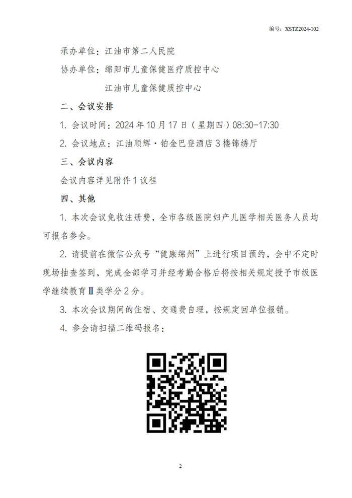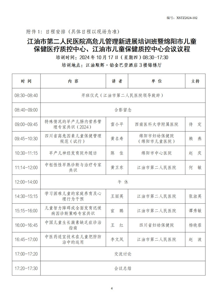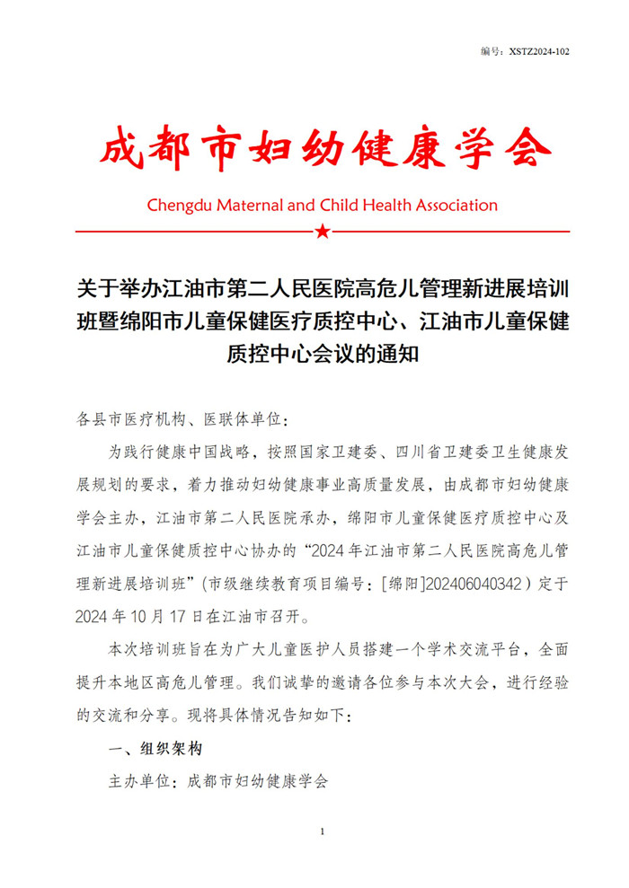 关于举办江油市第二人民医院高危儿管理新进展培训班暨绵阳市儿童保健医疗质控中心、江油市儿童保健质控中心会议的通知